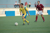 Min.5, foi a vez de Nuno Veludo que hoje esteve um pouquinho preso nas jogadas de ataque, sobretudo em relacção à velocidade que o Matias impôs no jogo, como ia dizendo, Nuno Veludo, pelo flanco esquerdo entrega a bola a Rodinhas que em frente ao guarda redes entrega à figura deste. Dois lances consecutivos da nossa equipa que sacudiu a pressão da equipa da casa. Min.7, foi a vez de Casquinha que no meio campo ataca a bola avança no terreno e passa à esquerda para Rodinhas.